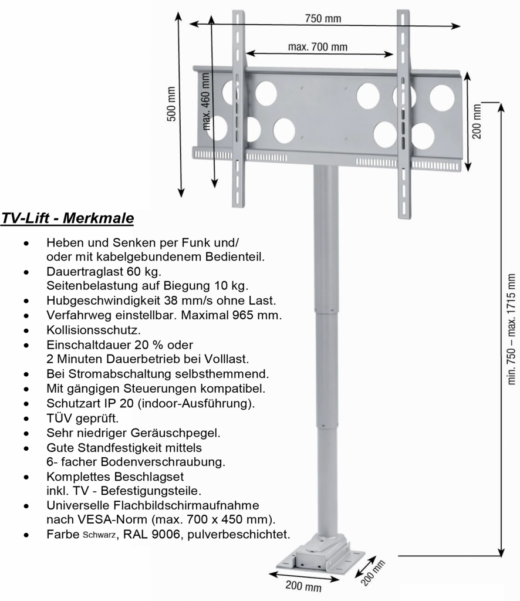 2795,00 Euro inkl. MwSt. mit 4 Hubsäulen und 100 kg Traglast